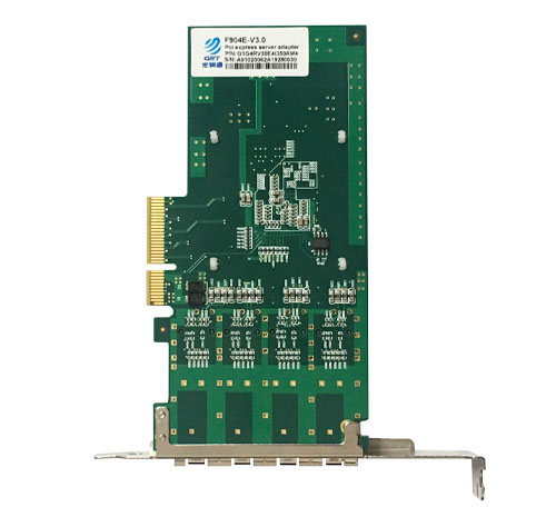 F904E是光潤通在基于Intel I350AM4主控方案的基礎(chǔ)上自主研發(fā)出來的一款SFP四口光纖以太網(wǎng)PCI Express X4網(wǎng)絡(luò)適配器。同時可以兼容PCIe x4、PCIe x8、PCIe x16通道。